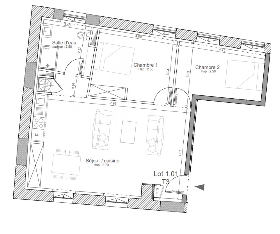 396 696€ Appt. T3 57.65m2 1er