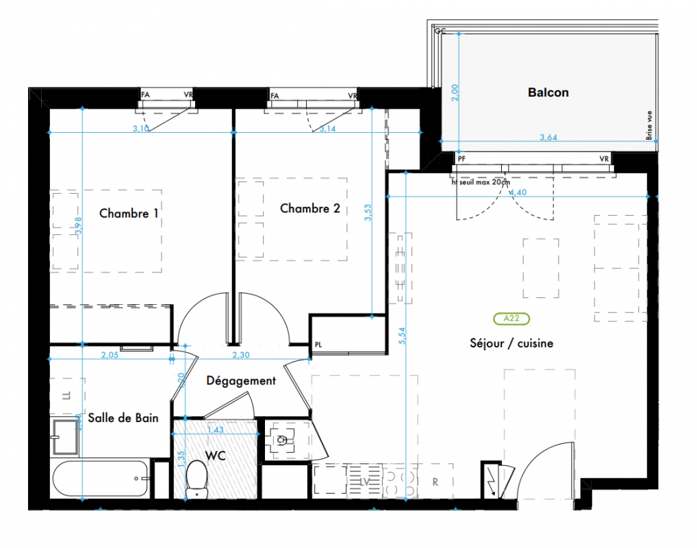 302 100€ Appt. T3 60.41m2 0-RDC