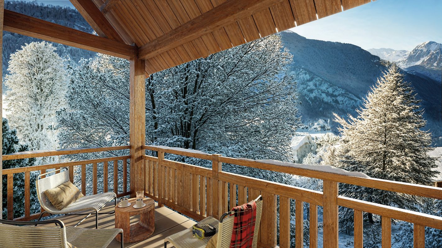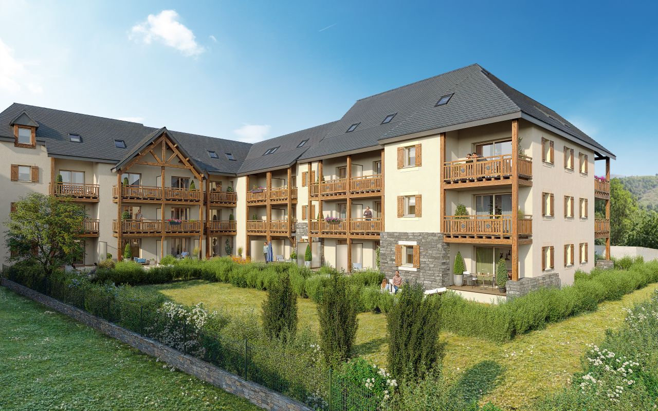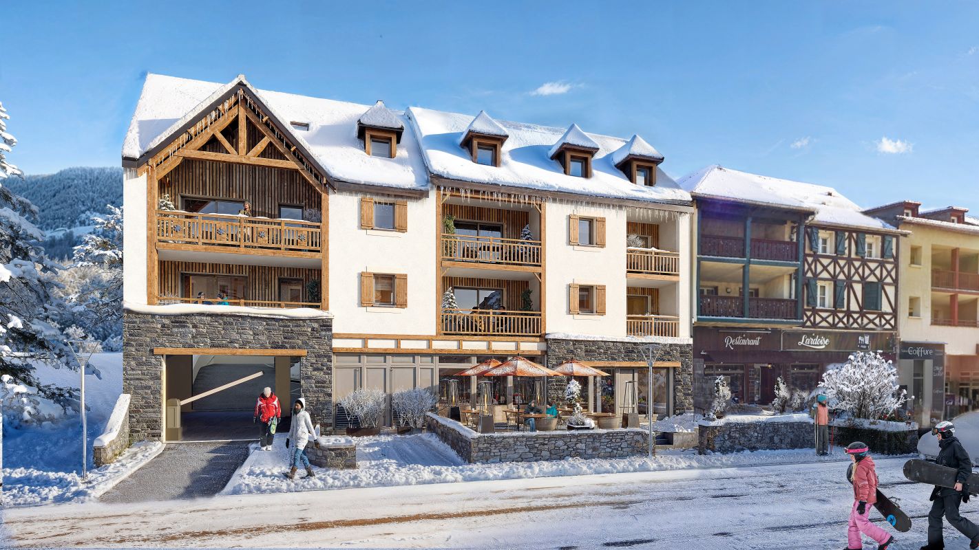 La résidence s'intègre harmonieusement dans le paysage grâce à son architecture pyrénéenne traditionnelle mêlant ardoise, pierre et bois. La résidence intimiste se compose de 36 appartements de standing, du studio au T3 bis duplex, tous prolongés par des extérieurs agréables : jardin en rez-de-chaussée ou balcon aux étages. Chaque appartement dispose d'une place de stationnement, et la copropriété est équipée de casiers à skis, d'un local à vélos, et de celliers.