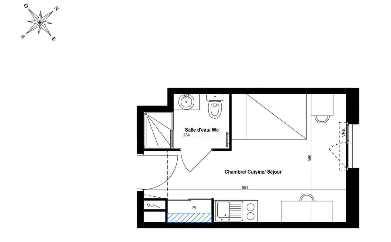 163 704€ Appt. Studio 23.03m2 0-RDC