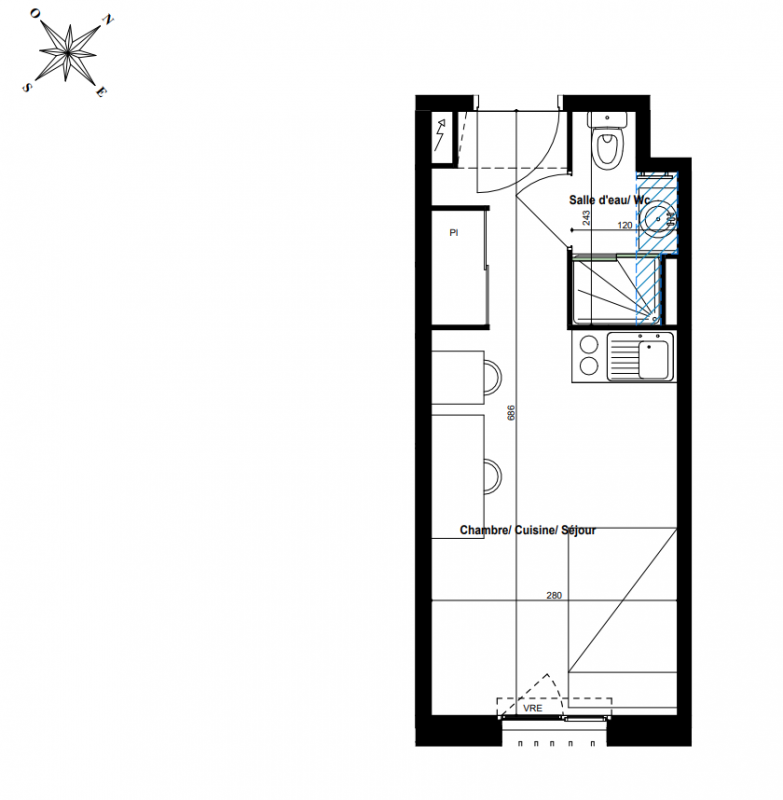 163 704€ Appt. Studio 23.03m2 0-RDC