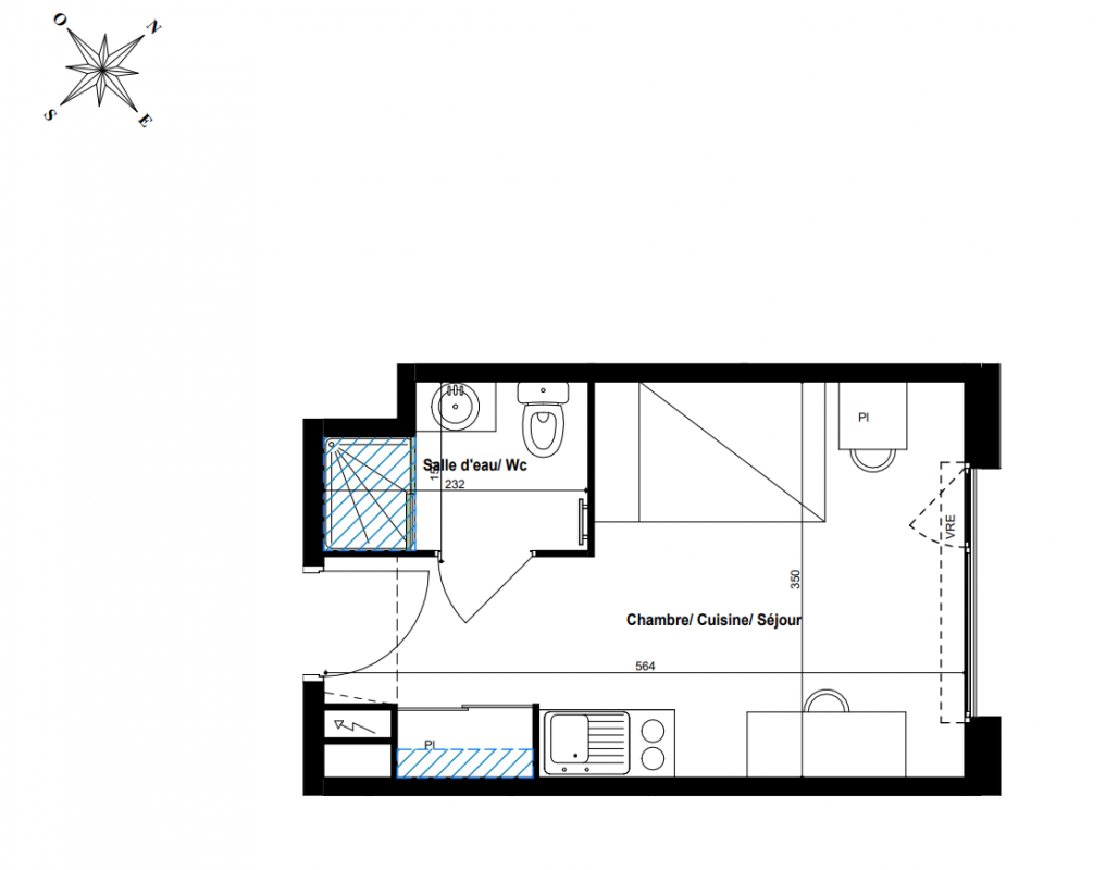 163 704€ Appt. Studio 23.03m2 0-RDC