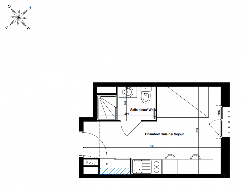 136 128€ Appt. Studio 19.15m2 0-RDC