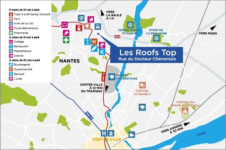 Situation : Nantes centre-ville ! Au pied du projet : boulangerie, pharmacie, tabac-presse, tramway, parc de Procé À moins de 10 minutes à vélo : tous les commerces et services des places d...