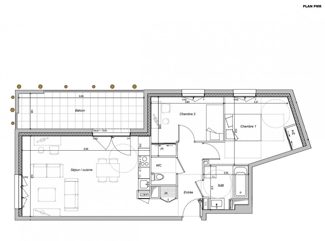 252 000€ Appt. T3 61.41m2 0-RDC