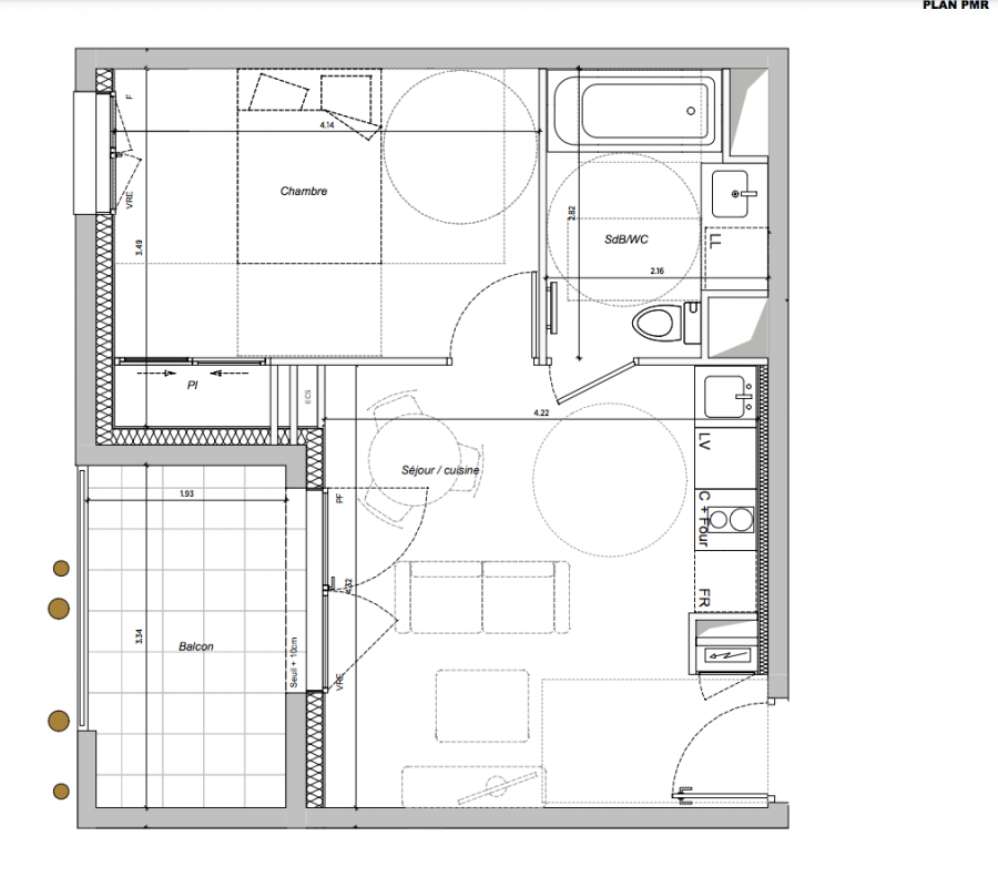 207 000€ Appt. T2 41.3m2 3ème