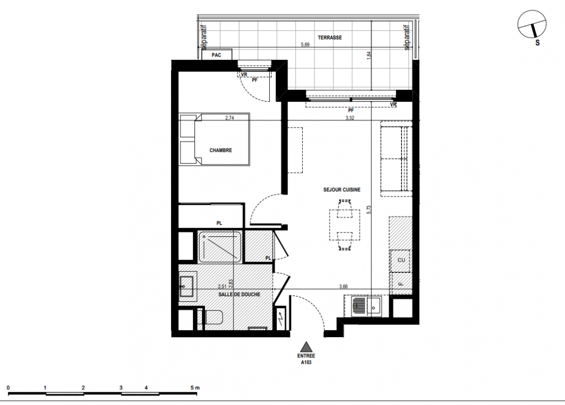 282 000€ Appt. T2 39.99m2 0-RDC