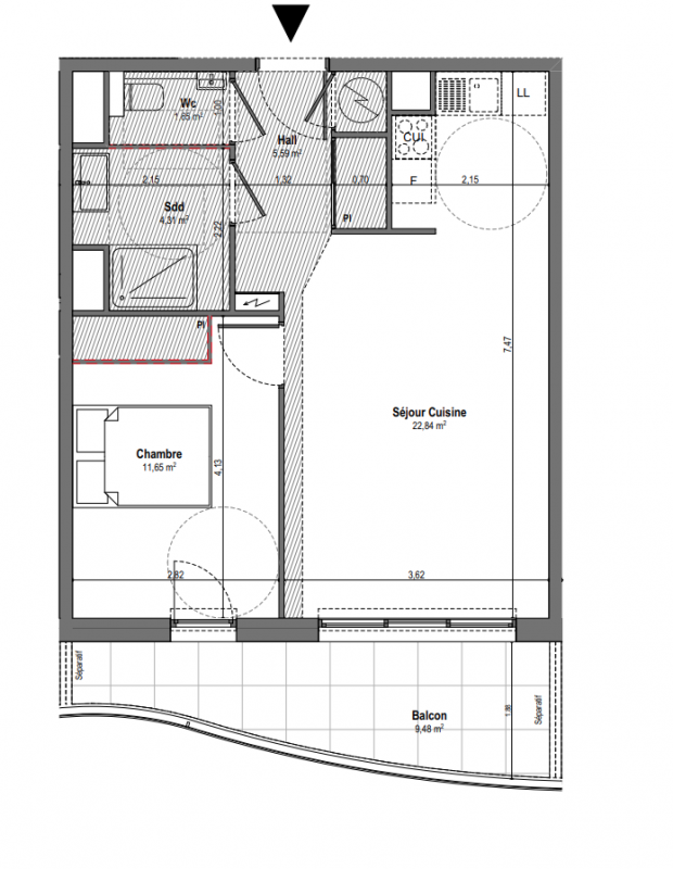 420 000€ Appt. T2 42.8m2 3ème