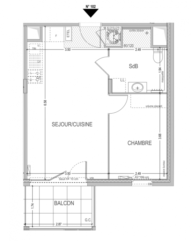 194 502€ Appt. T2 37.66m2 3ème