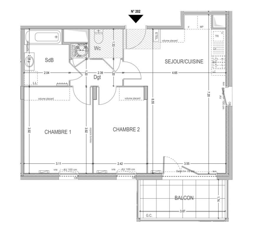 265 024€ Appt. T3 58.87m2 2ème