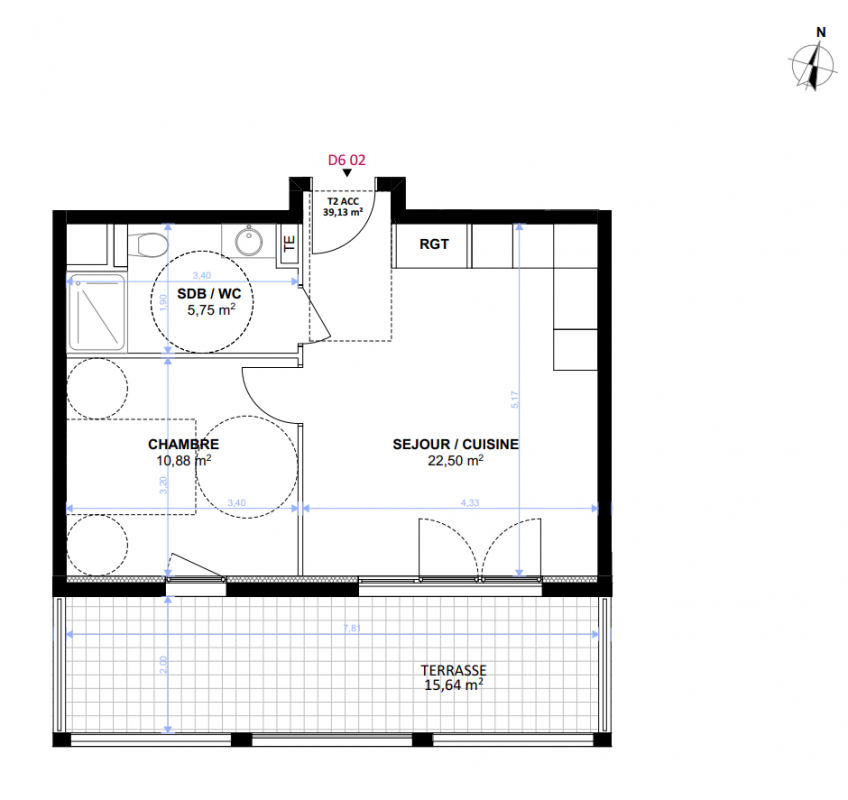 211 223€ Appt. - 43.85m2 6ème