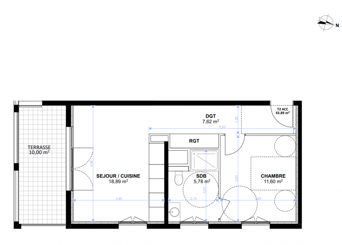 43.85 m²